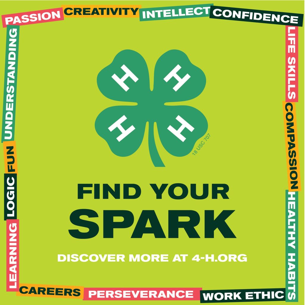 Every year, National 4-H Week sees millions of youth, parents, volunteers and alumni come together to celebrate the many positive youth development opportunities offered by 4-H. The theme for the 2021 National 4‑H Week is October 3 – 9 is Find Your Spark!