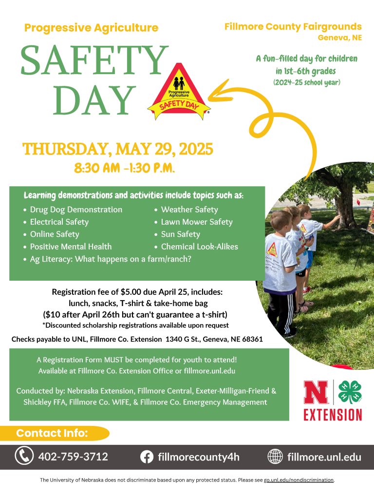 Finally, Nebraska Extension engages many Nebraskans in Extension programming every year – from the agricultural community to sectors as diverse as nutrition, early childhood education and youth development. From border-to-border Nebraska Extension is making an incredible impact on the success of our state – its youth, its families, its farms and ranches, its communities, and its economy. These are broad program accomplishments to look at from a balcony view, but what are some key impacts locally for Clay and Fillmore Counties?